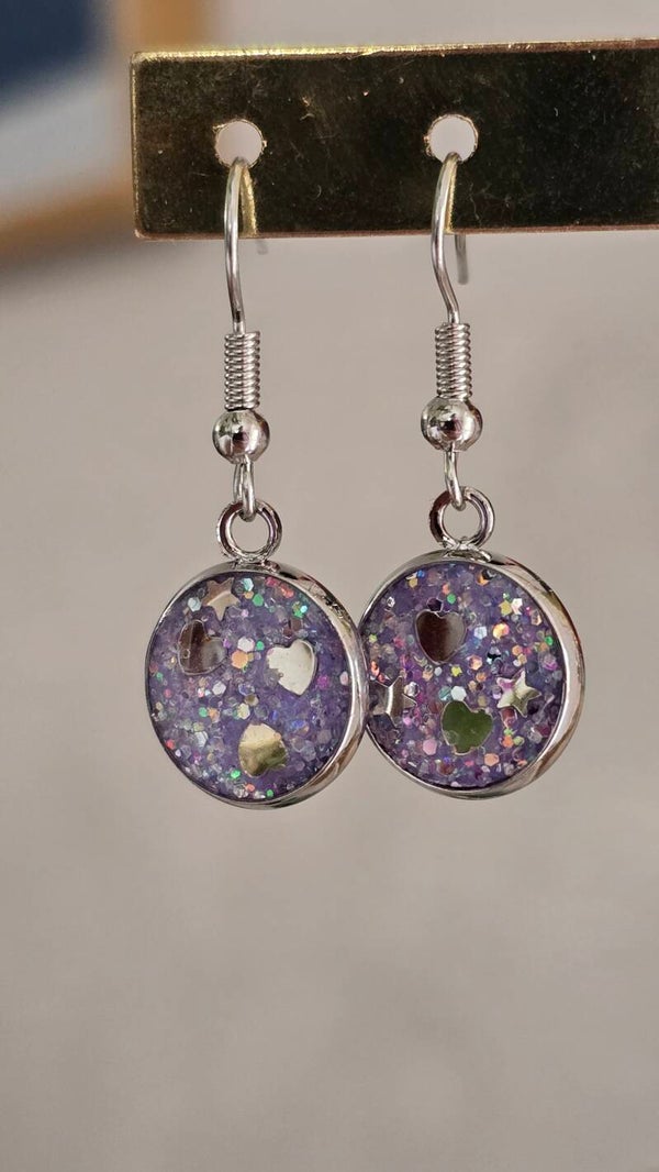 Retrouvez notre gamme de boucles d'oreilles rondes avec insert en cuir ou similicuir recouvert de résine.
